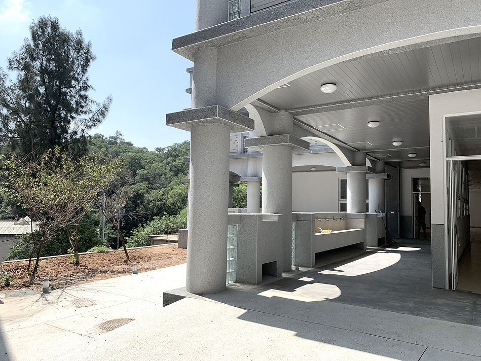本案量體與材質,基於整體校區風格,彰顯學校於戰地政務時期就已存在,採取帶著軍事風格的建築語彙。
